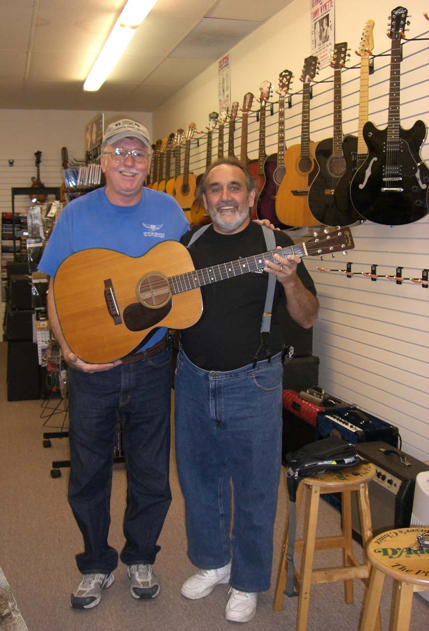 Here's me (on the right) with Frank Benna of Guitar Heaven in Pleasant Hill, California, where I bought my birth-year baby. You can see the beautiful condition she's in, and I'm happy to say that she plays as great as she looks. The sound is fabulous.