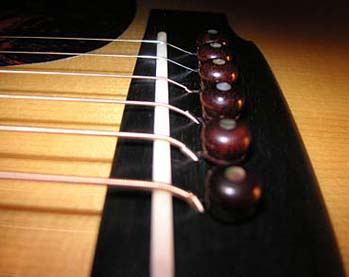 tuning machines are fitted with ebony knobs. The nut is bone, 1-11/16" wide.