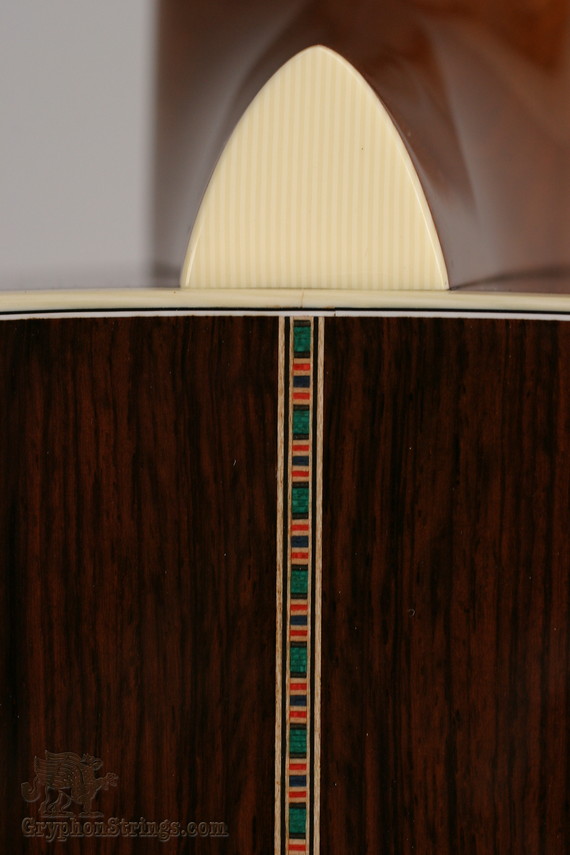 Gryphon had this one, #3 in the series, for about 2 days when I came by.  I couldn't pass this one up, it was just too special.  I played it for nearly an hour, long past where I would normally get shoulder pain from a dreadnaught-sized guitar.  The geometry of this one is very favorable to my shoulder, so I took it home...  Now to start the long process of falling even more deeply in love with it.